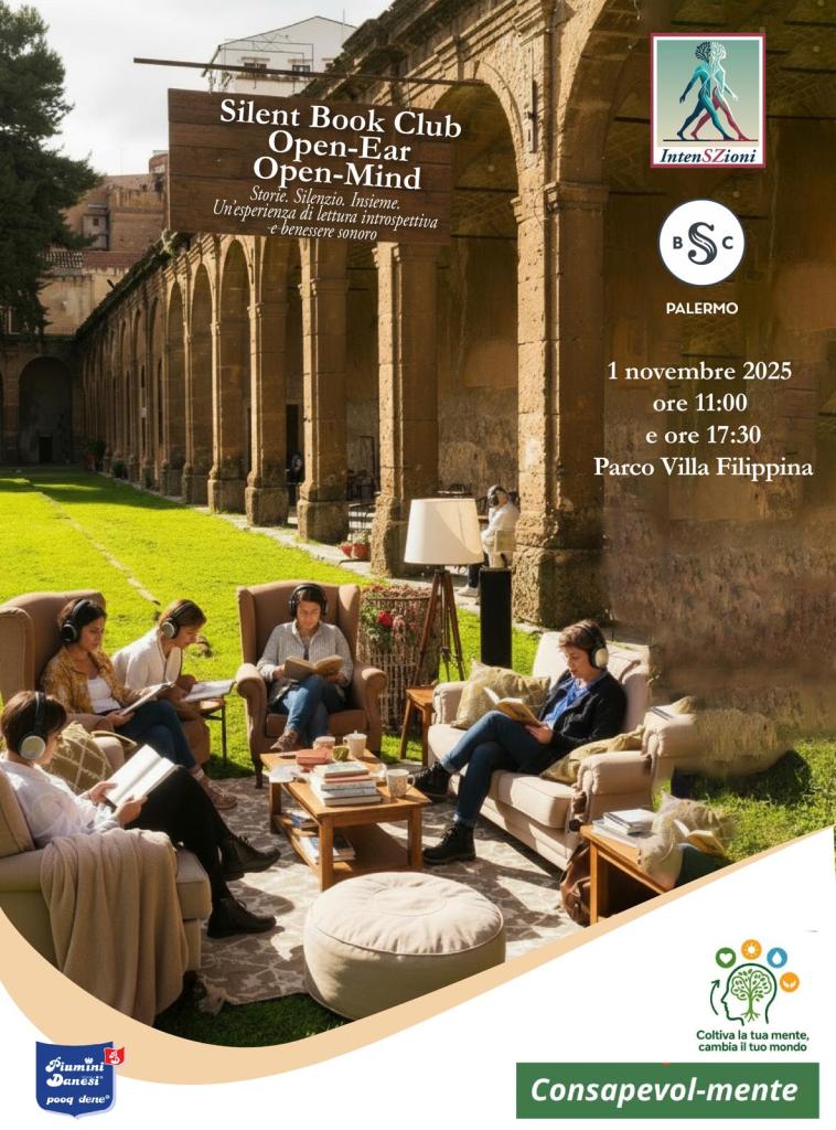 Sabato 01 Novembre 2025 Villa Filippina–Silent Book Club “OpenEar OpenMind” ore 11:00 e ore 17:30